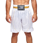 Spodenki bokserskie Leone1947 PREMIUM – białe z połyskiem i złotym pasem