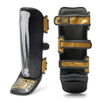 Ochraniacze piszczeli i stóp Leone 1947 X IUTER – Limitowana edycja, czarno-złote, do Muay Thai i kickboxingu